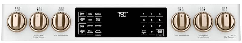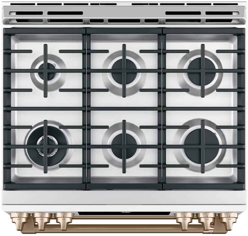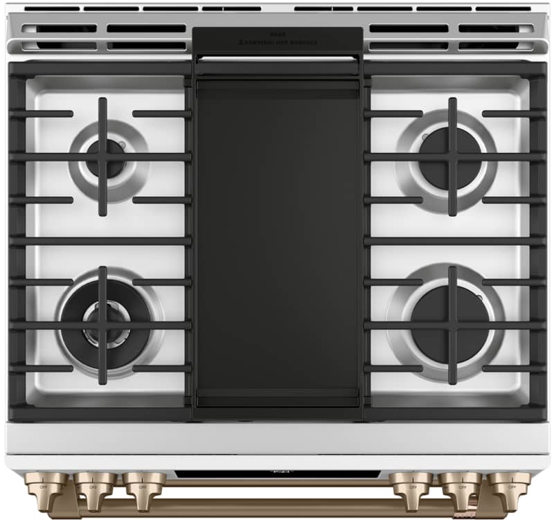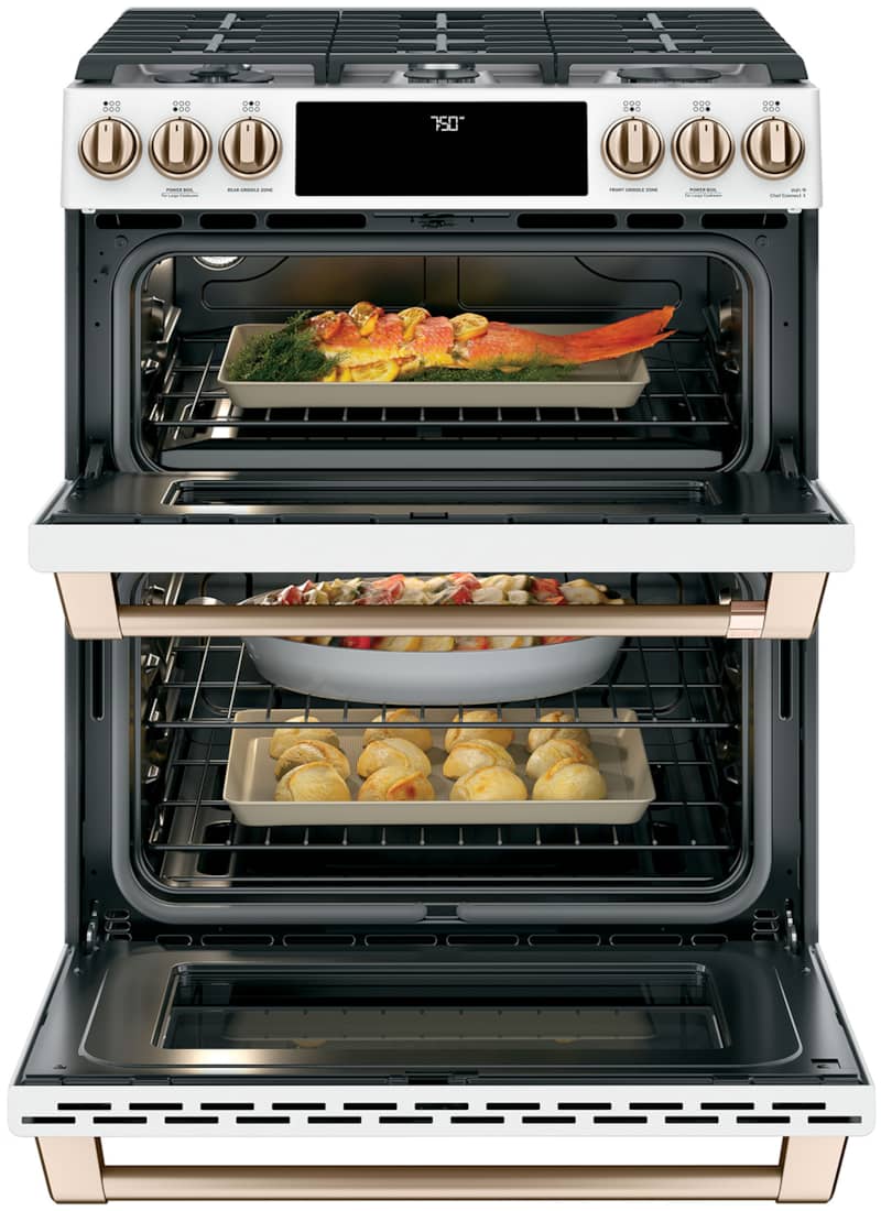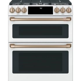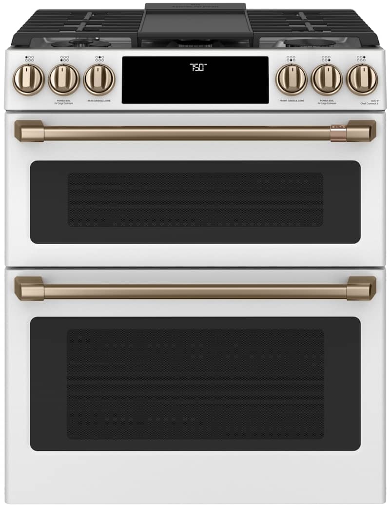 Cafe CGS750P4MW2 ADA 30″ Matte White With Brushed Bronze Smart Slide-In Double Oven Gas Range With Convection
