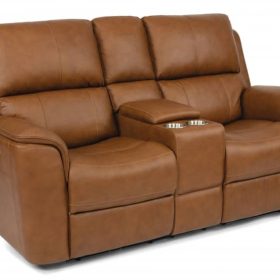 Flexsteel 1041-64PH-946-72 Henry Leather Power Reclining Loveseat With Console & Power Headrests & Lumbar In RussetA sleek, transitional style that delivers ultimate relaxation. Features