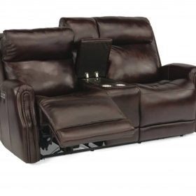 Flexsteel Stanley Leather Power Reclining Loveseat With Console & Power Headrests